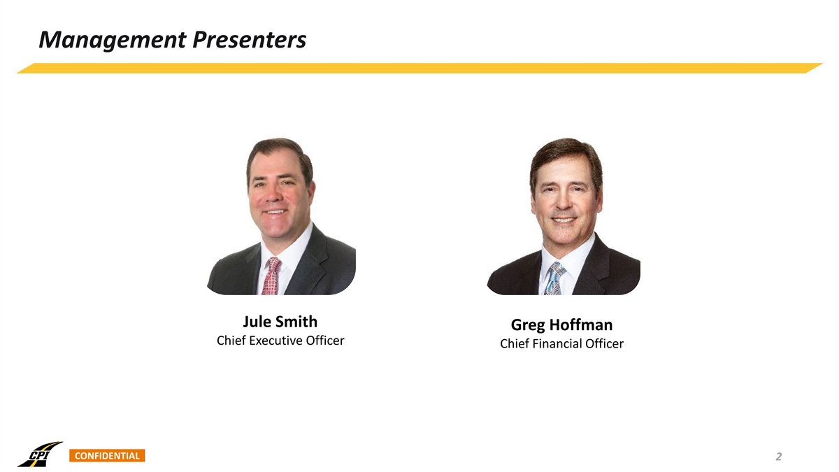 Management Presenters Jule Smith Greg Hoffman Chief Executive Officer Chief Financial Officer CONFIDENTIAL 2